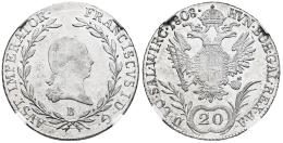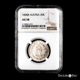Austria. Franz I. 20 kreuzer. 1808. Kremnitz. (Km-2141). Ag. Traces of luster. Slabbed by NGC as AU 58. Est...70,00.