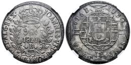 Brazil. D. Joao, Príncipe Regente (1799-1816). 960 reis. 1814. Bahía. B. (Km-307.1). (Gomes-31.08). Ag. Struck over 8 reales of 1809 minted in México of Ferdinand VII. Slabbed by NGC as MS 61. Est...250,00.