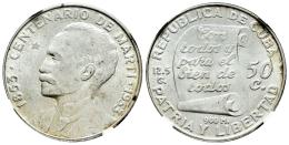 Cuba. 50 centavos. 1953. Philadelphia. (Km-28). Ag. Jose Marti centennial. Original luster. Slabbed by NGC as MS 62. Est...50,00.