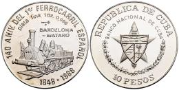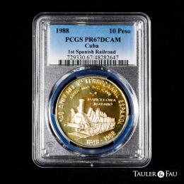 Cuba. 10 pesos. 1988. La Habana. (Km-206). Ag. 140th Anniversary of the First Spanish Railway. Slabbed by PCGS as PR 67 DCAM. PCGS-PR. Est...90,00.