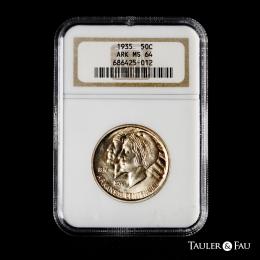 U.S. Coins. Commemorative issues. Half dollar. 1935. Philadelphia. (Km-168). Ag. Minor mark on obverse. Plenty of original luster. Slabbed by NGC as MS 64. Est...150,00.