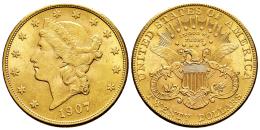U.S. Coins. Liberty Double Eagles. 20 dollars. 1907. Philadelphia. (Km-74.3). (Fr-177). Au. 33,38 g. Faint scratches. Original luster. XF. Est...3000,00.