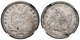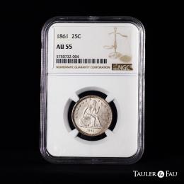 U.S. Coins. Seated Liberty Quarters. 25 cents. 1861. Philadelphia. (Km-A64.2). Ag. Slabbed by NGC as AU 55. Est...200,00.