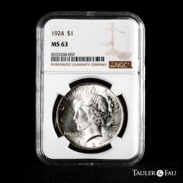 U.S. Coins. Peace Dollar. 1 dollar. 1923. Philadelphia. (Km-150). Ag. Original luster. Slabbed by NGC as MS 63. Est...100,00.