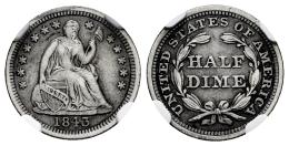 U.S. Coins. Seated Liberty Dime. 1 dime. 1843. Philadelphia. (Km-63.2). Ag. Slabbed by NGC as XF 45. Est...100,00.