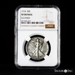 U.S. Coins. Walking Liberty Half Dollars. Half dollar. 1918. Philadelphia. (Km-142). Ag. Slabbed by NGC as XF details, cleaned. Est...60,00.