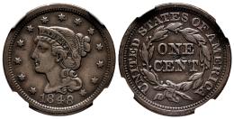 U.S. Coins. Braided Hair Cents. 1 cent. 1849. Philadelphia. (Km-67). Ae. Slabbed by NGC as VF 30 BN. Est...90,00.