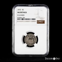 U.S. Coins. Shield Nickels. 5 cents. 1872. Philadelphia. (Km-97). Ni. Slabbed by NGC as AU Details, Cleaned. Est...60,00.