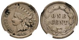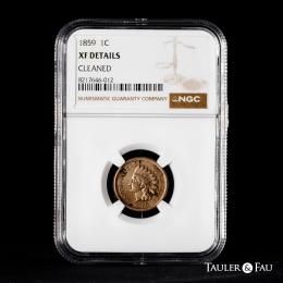 U.S. Coins. Indian Cents. 1 cent. 1859. Philadelphia. (Km-87). Ae. Slabbed by NGC as XF details, cleaned. Est...50,00.