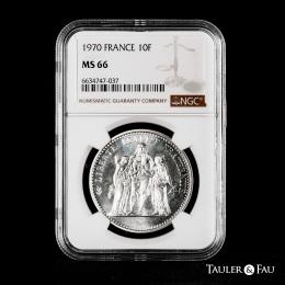 France. 10 francs. 1979. (Km-932). (Gad-813). Ag. Slabbed by NGC as MS 66. Est...45,00.