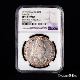 France. Louis XIV (1643-1715). 1 Ecu. 1694. Lille. w. (Km-300). (Dav-3813). (Gad-217). Ag. 27,45 g. Slabbed by NGC as Fine Details surface HAIRLINES. Est...200,00.