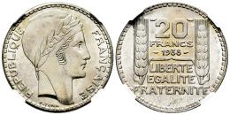France. 20 francs. 1938. Paris. (Km-879). (Gad-1789). Ag. Original luster. Slabbed by NGC as MS 62. Est...60,00.