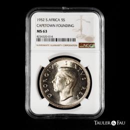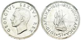 South Africa. 5 shillings. 1952. (Km-41). Ag. Capetown Founding. Slabbed by NGC as MS 63. Est...30,00.