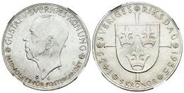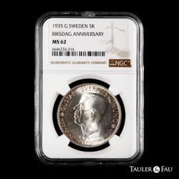 Sweden. Gustav V. 5 kronor. 1935. G. (Km-806). Ag. 500th Anniversary of Parliament. Slabbed by NGC as MS 62. Est...50,00.