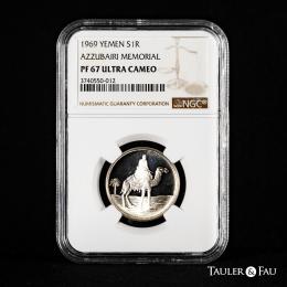 Yemen. 1 rial. 1969. (Km-1). Ag. Qadhi Mohammed Mahmud Azzubairi Memorial. Slabbed by NGC as PF 67 Ultra Cameo. Est...110,00.