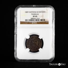 Switzerland. 1 batzen. 1809. Thurgau. (Km-7). Au. Slabbed by NGC as XF 45. Est...50,00.
