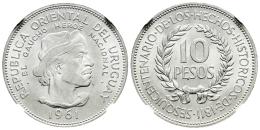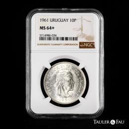 Paraguay. 10 pesos. 1961. (Km-64). Ag. Slabbed by NGC as MS 64+. Est...45,00.
