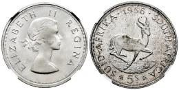 South Africa. Elizabeth II. 5 shillings. 1956. Pretoria. (Km-52). Ag. Slabbed by NGC as PL 66. Est...250,00.