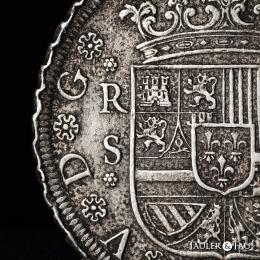 Philip V (1700-1746). 8 reales. 1730. Sevilla. (Cal-1622). Ag. 26,84 g. No denomination and no assayer marks. Some scratches along the peripheries. Soft patina. Very scarce. Ex Áureo (21/05/1996), lot 638. Ex José Octavio Busto Collection. Retains the collector’s label. VF. Est...750,00.