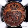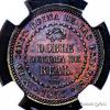 Elizabeth II (1833-1868). "Doble decima de real". 1853. Segovia. (Cal-148). Ae. 7,65 g. Magnificent and the best preserved specimen known. Very nice color and excellent eye appeal. Very rare, even more in this grade. Slabbed by NGC as MS 66 BN. (Top Pop), the finest known in the NGC census. Ex Tauler&Fau Selection (22/11/2022), lot 286. Est...2500,00.