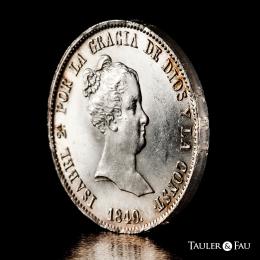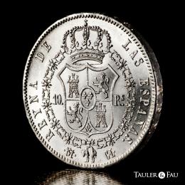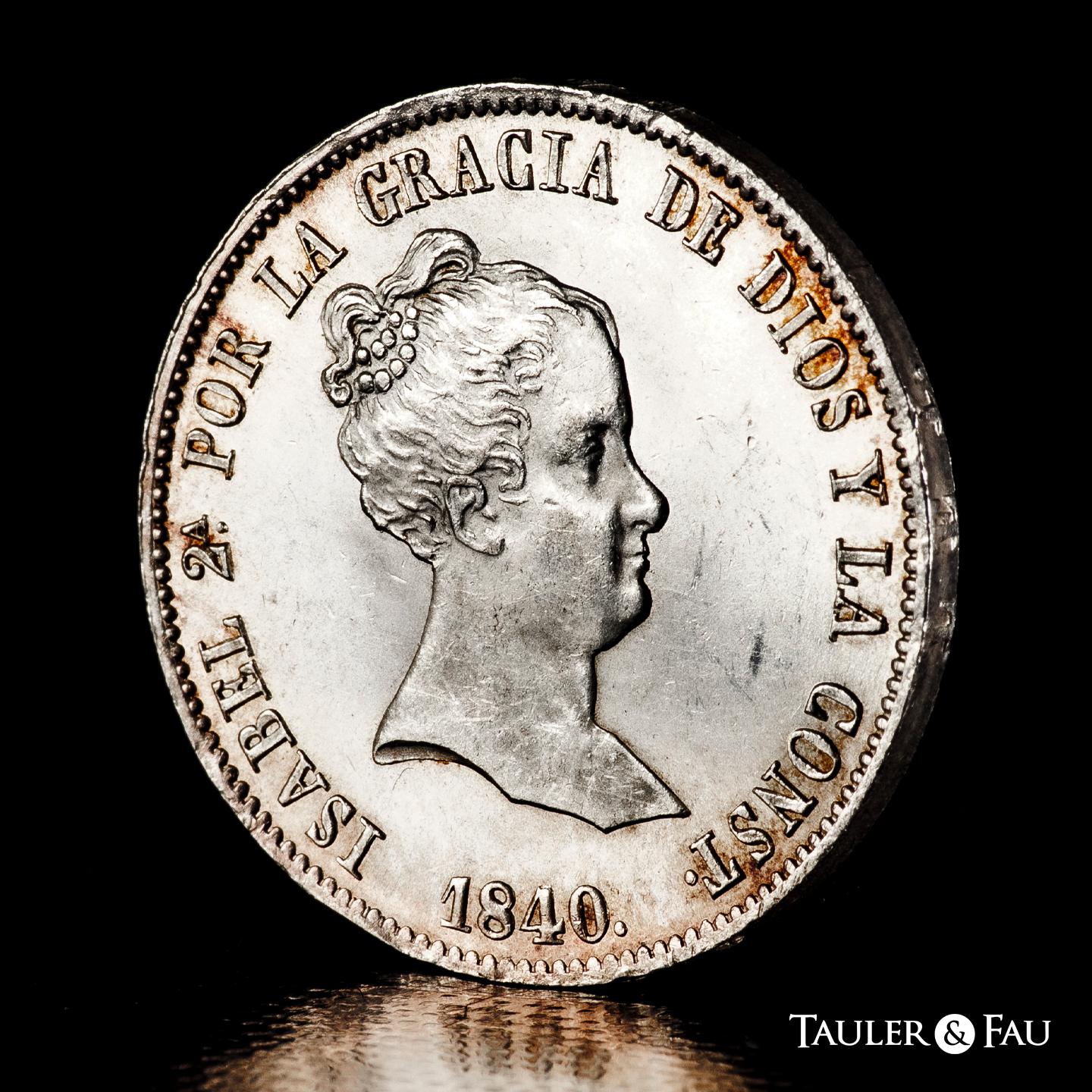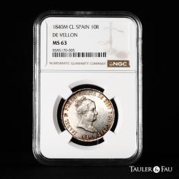 Elizabeth II (1833-1868). 10 reales. 1840. Madrid. CL. (Cal-520). Ae. 13,50 g. Magnificent piece. Plenty of original luster. Minimal hairlines. Very rare in this grade. Slabbed by NGC as MS 63 (Top Pop), the finest known in the NGC census. Est...1800,00.