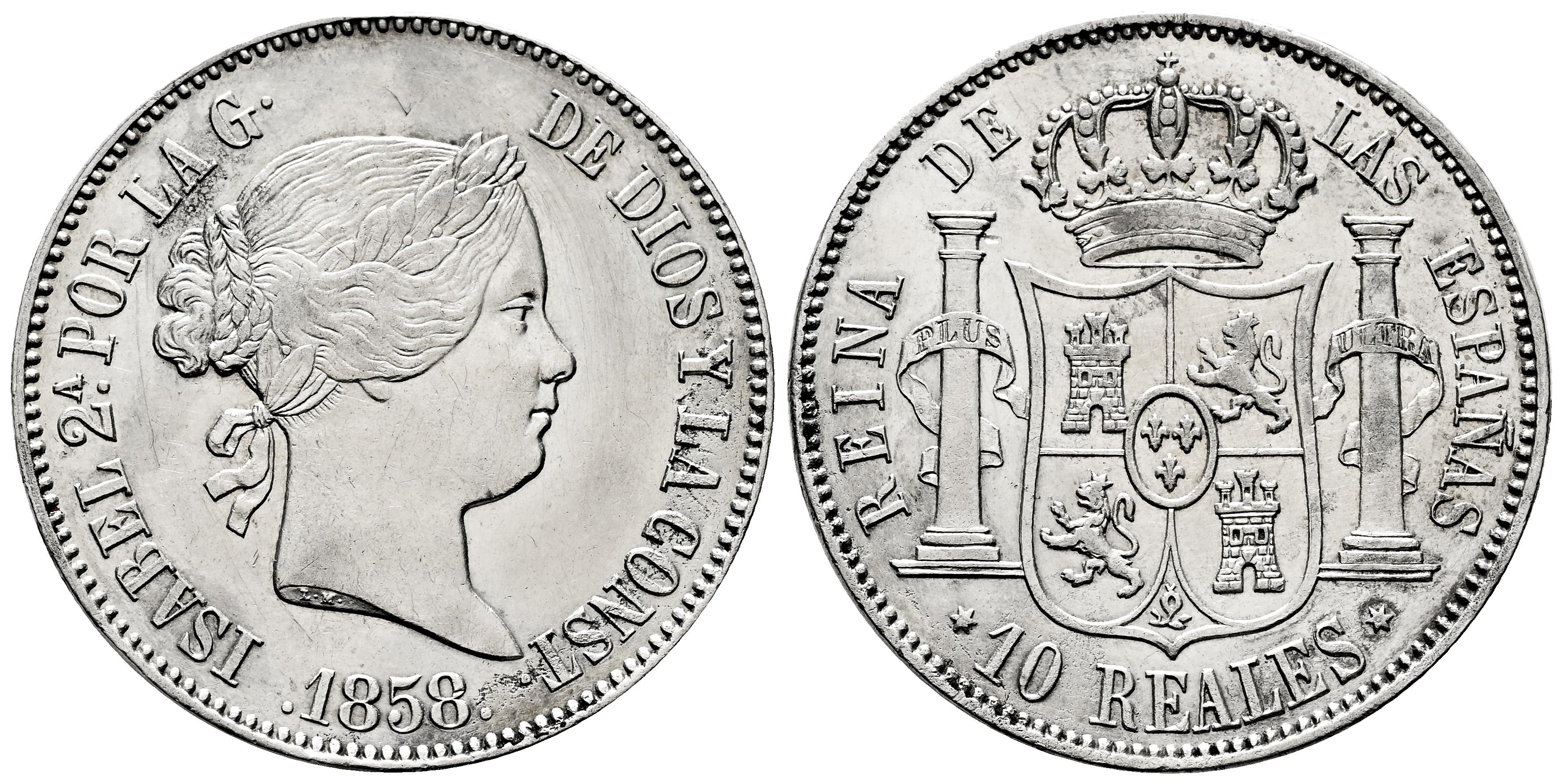 Elizabeth II (1833-1868). 10 reales. 1858. Madrid. (Cal-535). Ae. 12,98 g. Traces of luster. Lightly rubbed. Almost XF. Est...150,00.