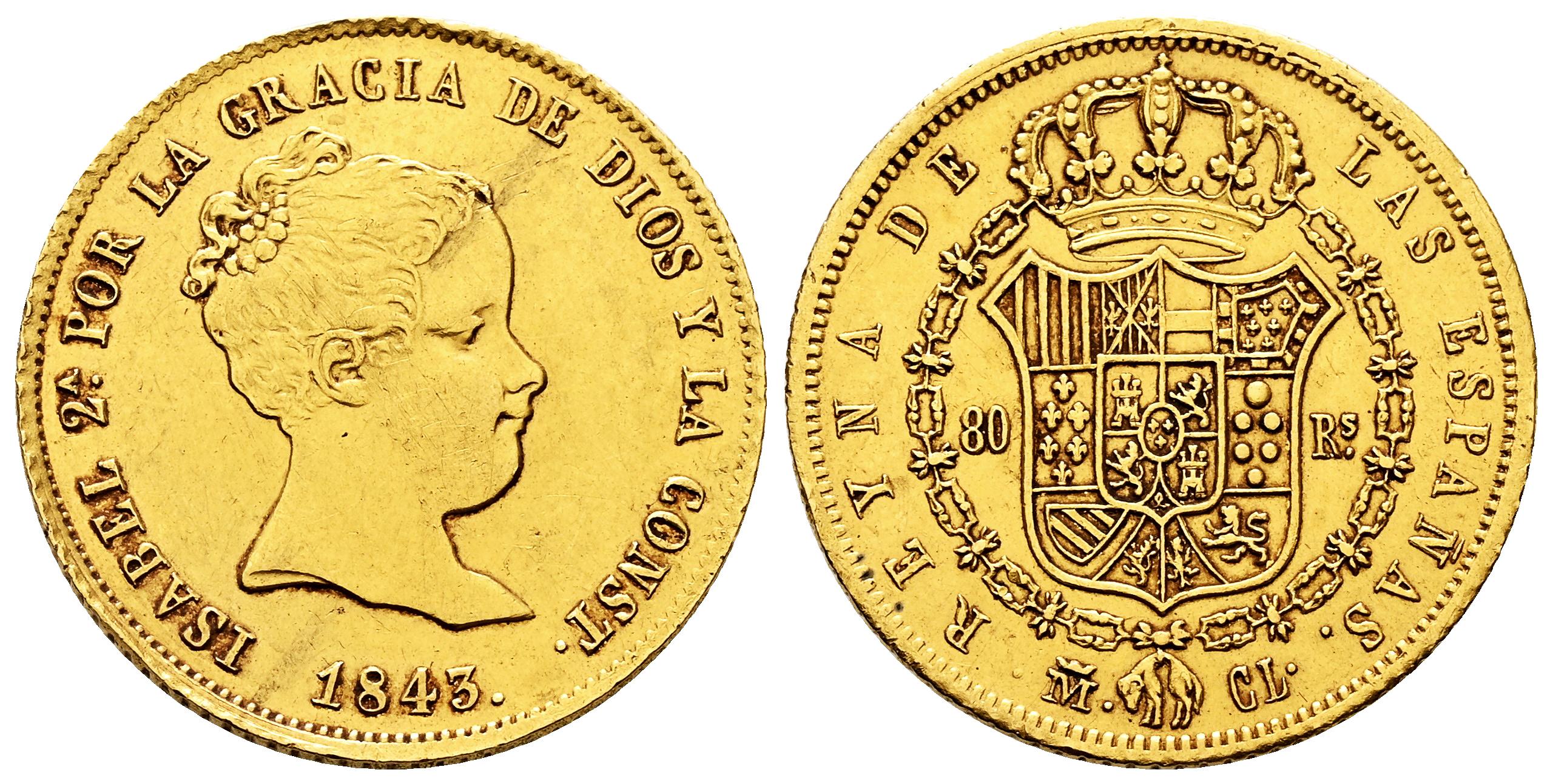 Elizabeth II (1833-1868). 80 reales. 1843. Madrid. CL. (Cal-730). Au. 6,74 g. Minor scratches. XF/Almost XF. Est...600,00.