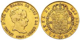 Elizabeth II (1833-1868). 80 reales. 1840. Sevilla. RD. (Cal-744). Au. 6,76 g. Hairlines. Knock on obverse. Scarce. VF/Choice VF. Est...600,00.