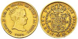 Elizabeth II (1833-1868). 80 reales. 1842. Sevilla. RD. (Cal-747). Au. 6,68 g. Minor nick on edge. Choice VF. Est...550,00.