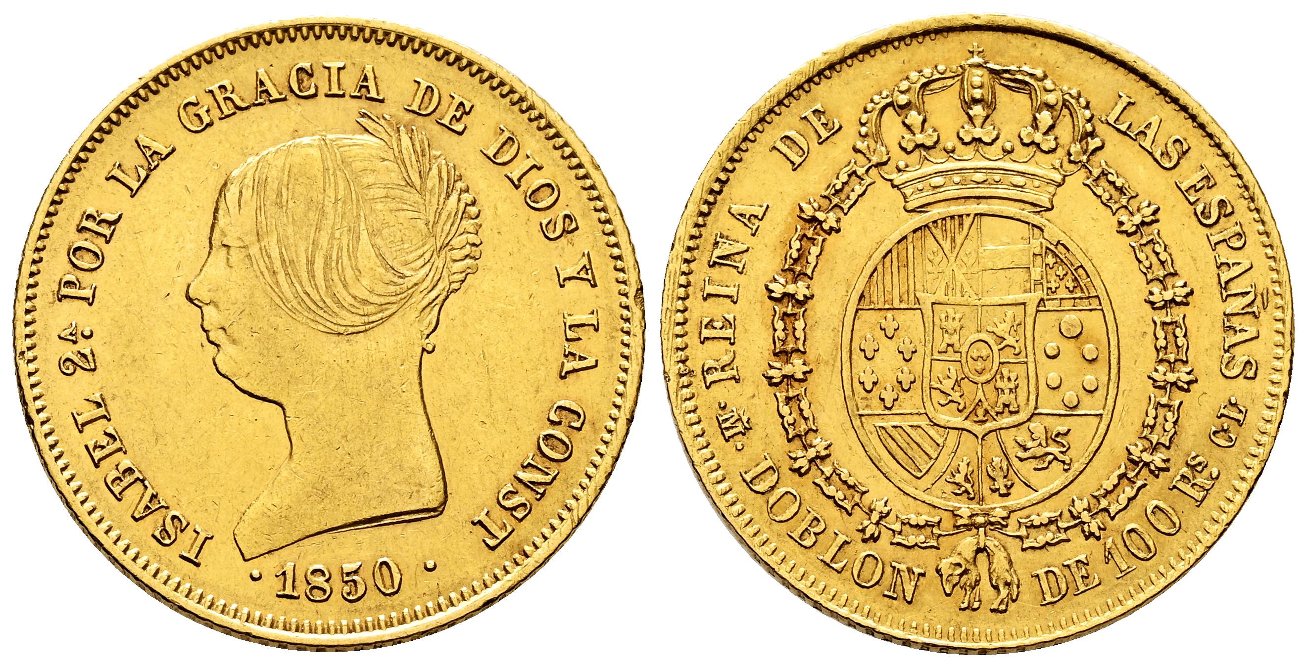 Elizabeth II (1833-1868). Doblon of 100 reales. 1850. Madrid. CL. (Cal-757). Au. 8,19 g. Traces of luster. Hairline on obverse. Almost XF. Est...700,00.