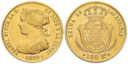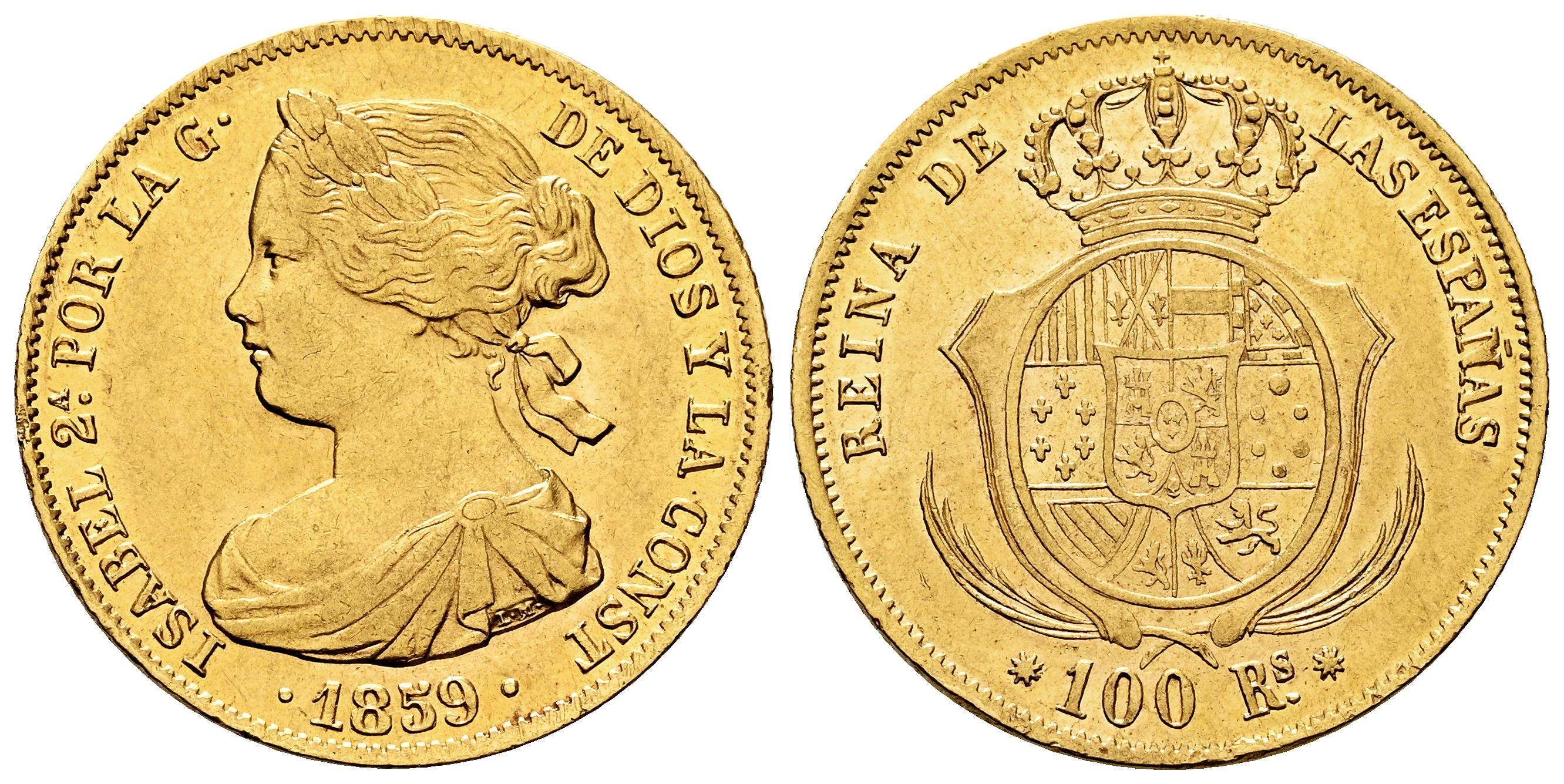 Elizabeth II (1833-1868). 100 reales. 1859. Barcelona. (Cal-770). Au. 8,36 g. Traces of luster. Almost XF. Est...700,00.