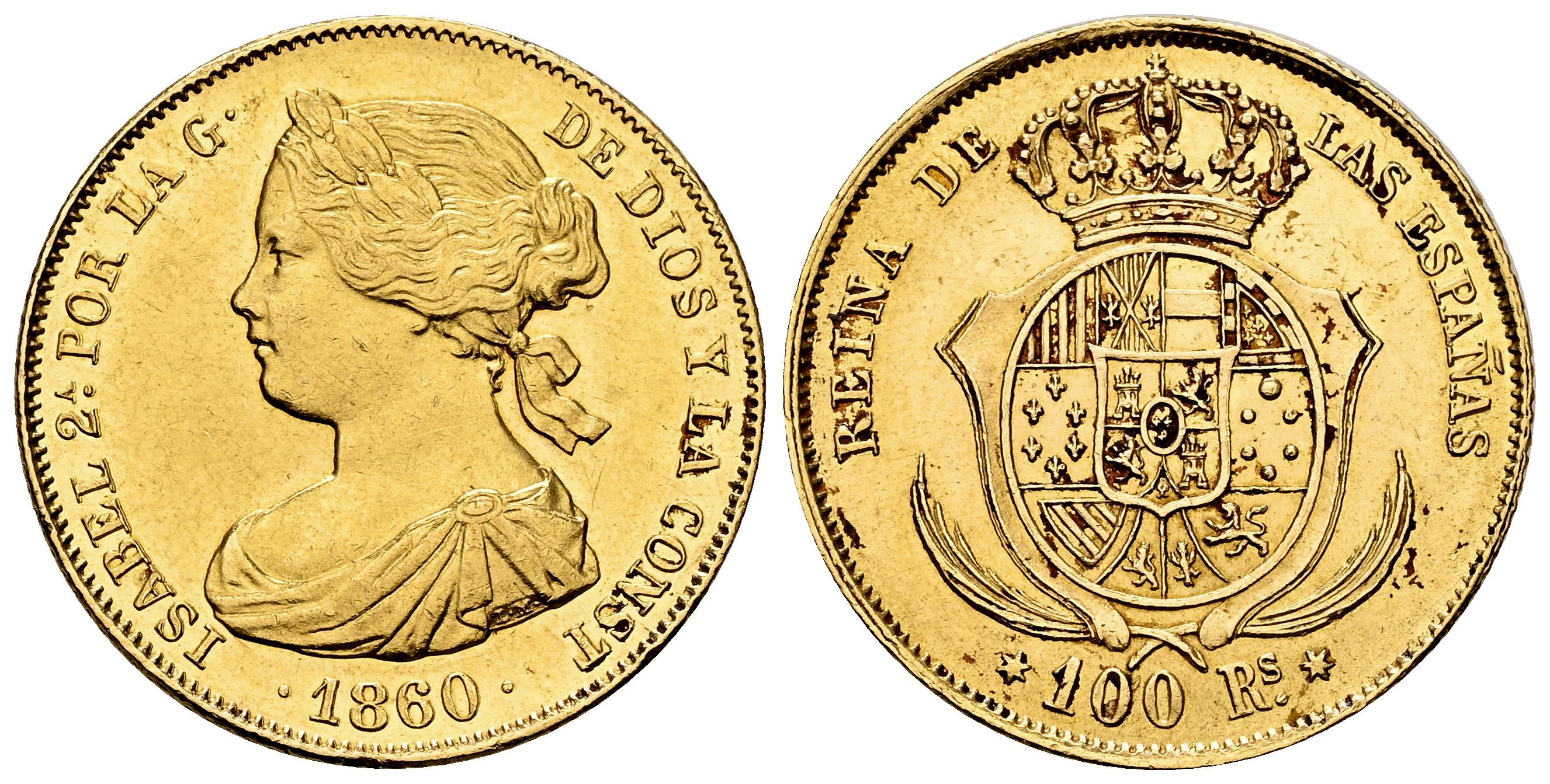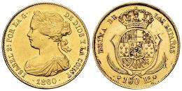 Elizabeth II (1833-1868). 100 reales. 1860. Madrid. (Cal-787). Au. 8,38 g. Original luster. AU. Est...750,00.