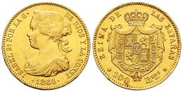 Elizabeth II (1833-1868). 100 reales. 1864. Madrid. (Cal-792). Au. 8,30 g. Original luster. Nice color. XF/AU. Est...700,00.