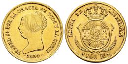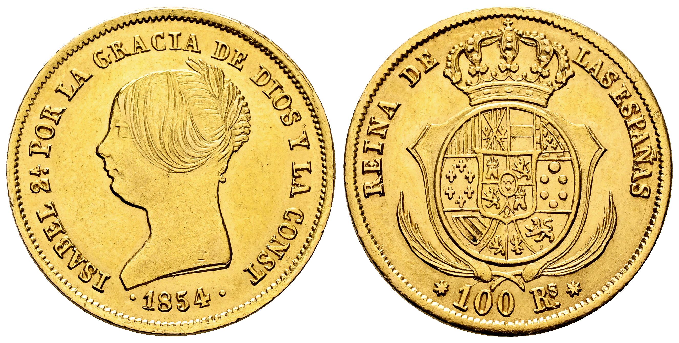 Elizabeth II (1833-1868). 100 reales. 1854. Sevilla. (Cal-795). Au. 8,33 g. Nice color. Original luster. AU. Est...700,00.