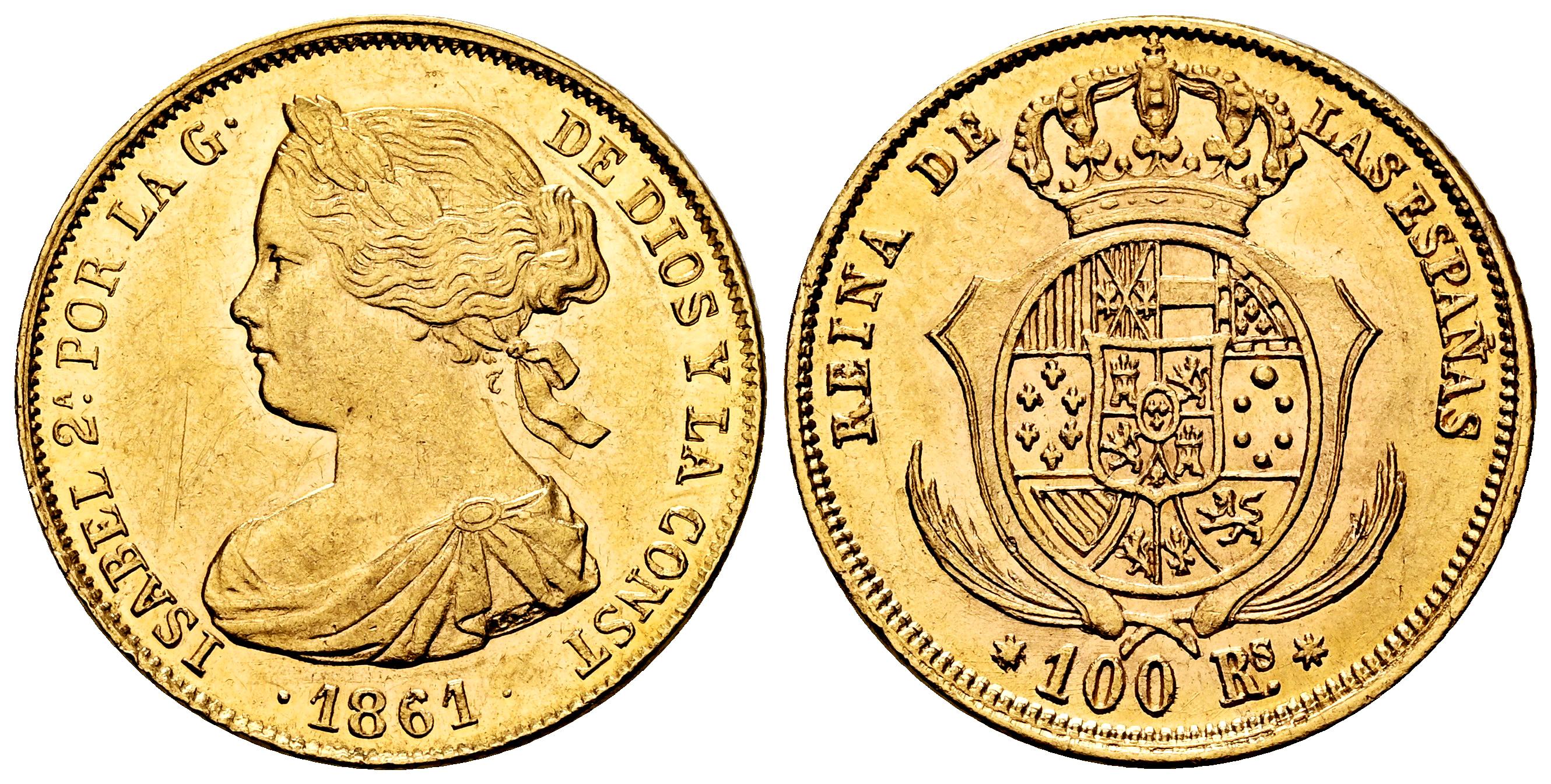 Elizabeth II (1833-1868). 100 reales. 1861. Sevilla. (Cal-804). Au. 8,29 g. Plenty of original luster. Faint scratches. Scarce in this grade. Almost MS. Est...800,00.