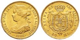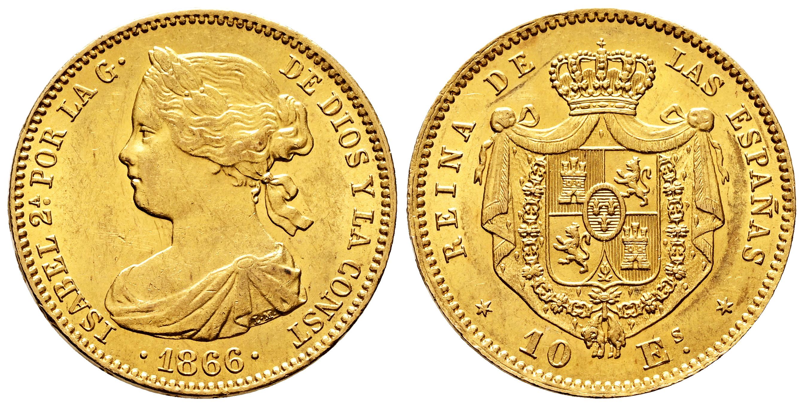 Elizabeth II (1833-1868). 10 escudos. 1866. Madrid. (Cal-812). Au. 8,41 g. Gorgeous colour. Original luster. XF/AU. Est...700,00.