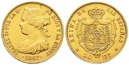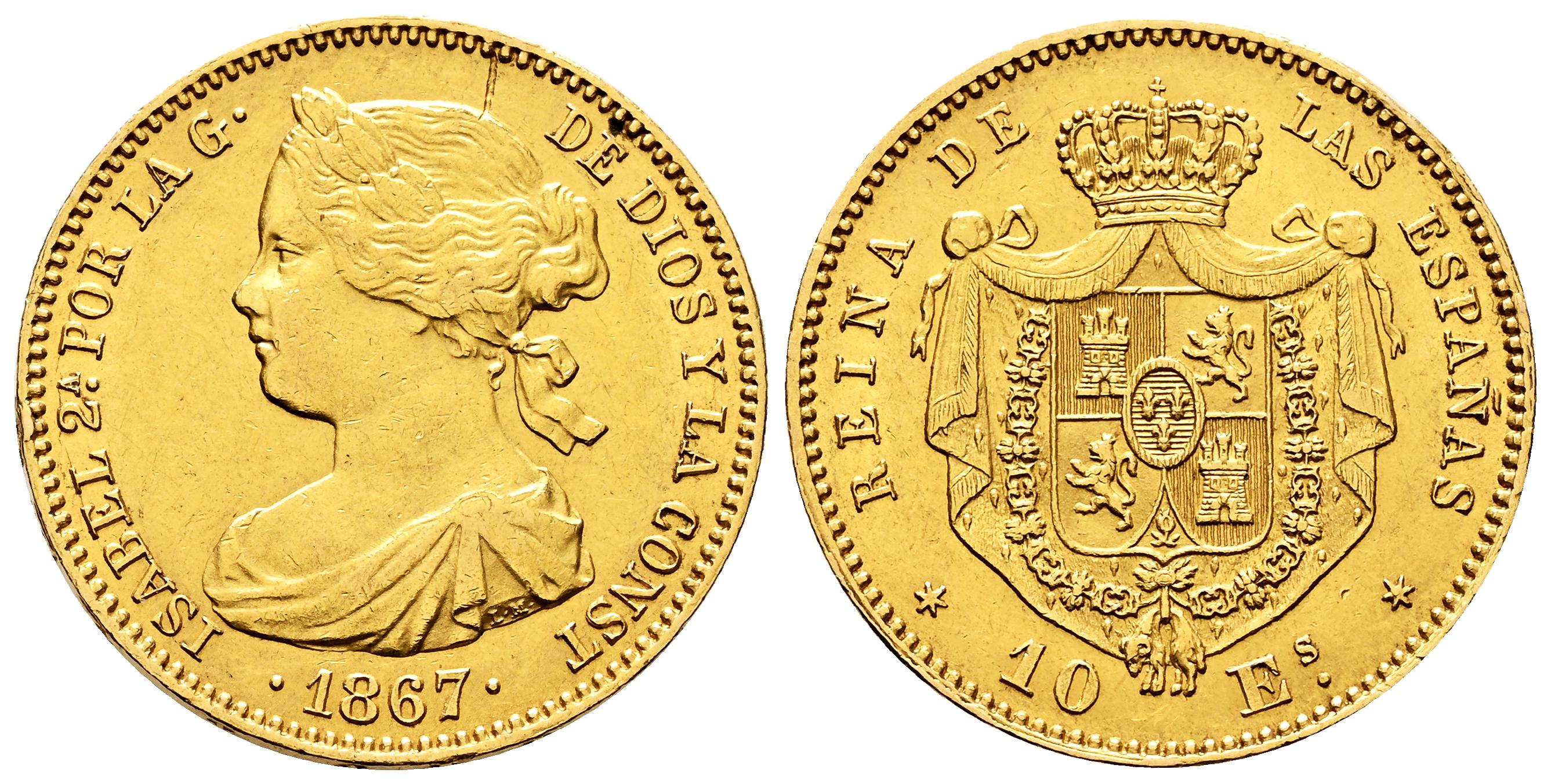 Elizabeth II (1833-1868). 10 escudos. 1867. Madrid. (Cal-813). Au. 8,37 g. Almost XF. Est...700,00.