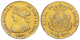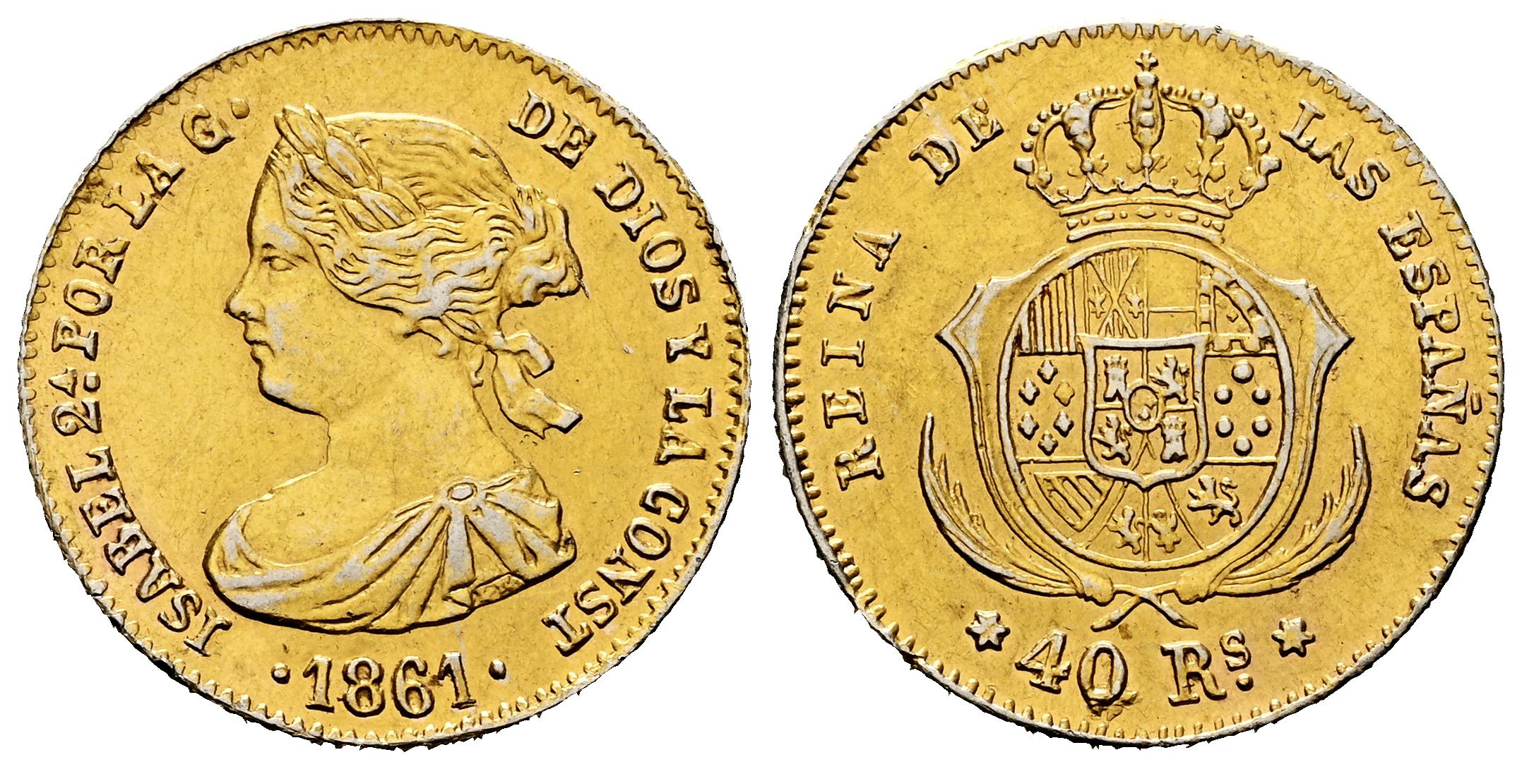 Elizabeth II (1833-1868). 40 reales. 1861. Madrid. (Cal-679 var.). Platinum. 3,34 g. Contemporary counterfeit in gilded platinum. Scarce. Choice VF. Est...250,00.