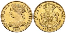 Elizabeth II (1833-1868). 100 reales. 1861. Barcelona. (Barrera-No cita). Au. 8,31 g. Contemporary counterfeit. Very interesting. Almost XF. Est...500,00.