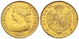Elizabeth II (1833-1868). 10 escudos. 1867*18-68. Madrid. Platinum. 8,32 g. Contemporary counterfeit in platinum. Retains the original gold plating. XF. Est...300,00.