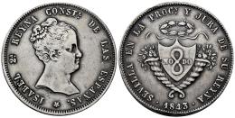 Elizabeth II (1833-1868). "Coming of age" medal. 1843. Sevilla. (Herrera-16). (Vives-373). (Vq-13424). Ag. 40,65 g. Knock on the edge. Cleaned. 37 mm. Choice VF. Est...75,00.