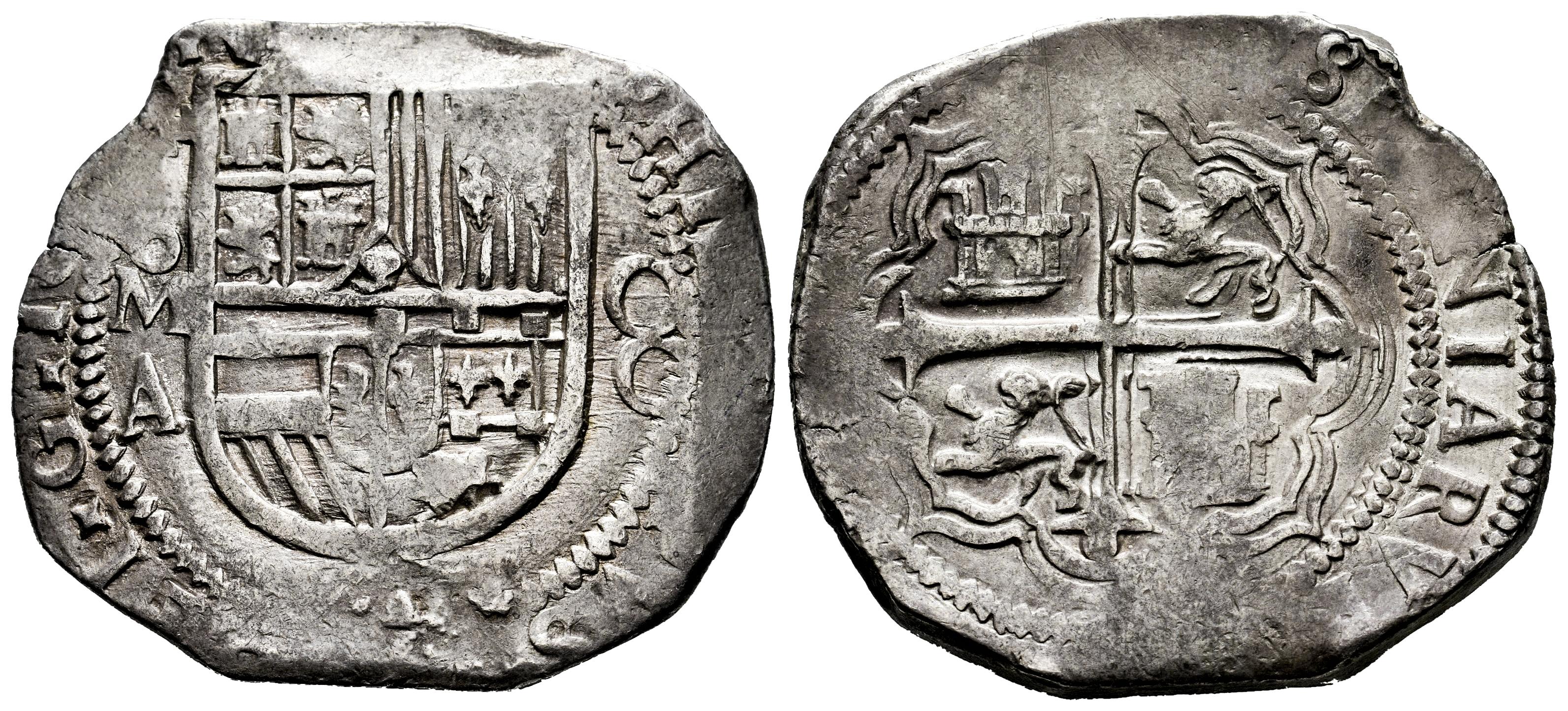 Philip III (1598-1621). 8 reales. (1608-1609). Mexico. A. (Cal-890/891). Ag. 27,15 g. No date but according to the assayer, it corresponds to 1608 or 1609. Attractive with ample surviving mint frost throughout. Well struck in the centers, the peripheral details somewhat soft. Rare. Ex S.P. Rutherford Collection. Choice VF. Est...1500,00.