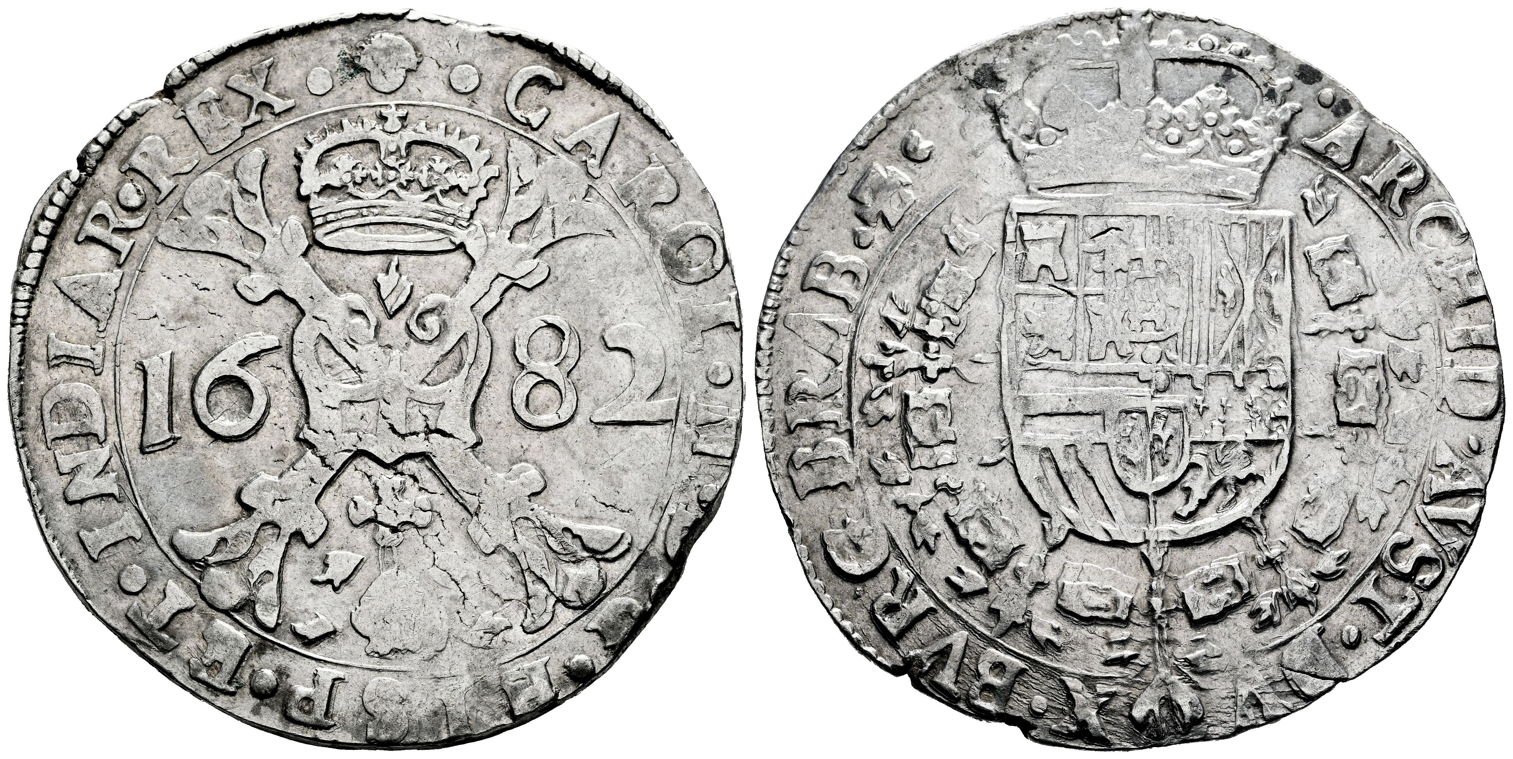 Charles II (1665-1700). 1 patagon. 1682. Brussels. (Tauler-3359). Ag. 28,02 g. Original luster. Scarce in this grade. Almost XF/XF. Est...350,00.