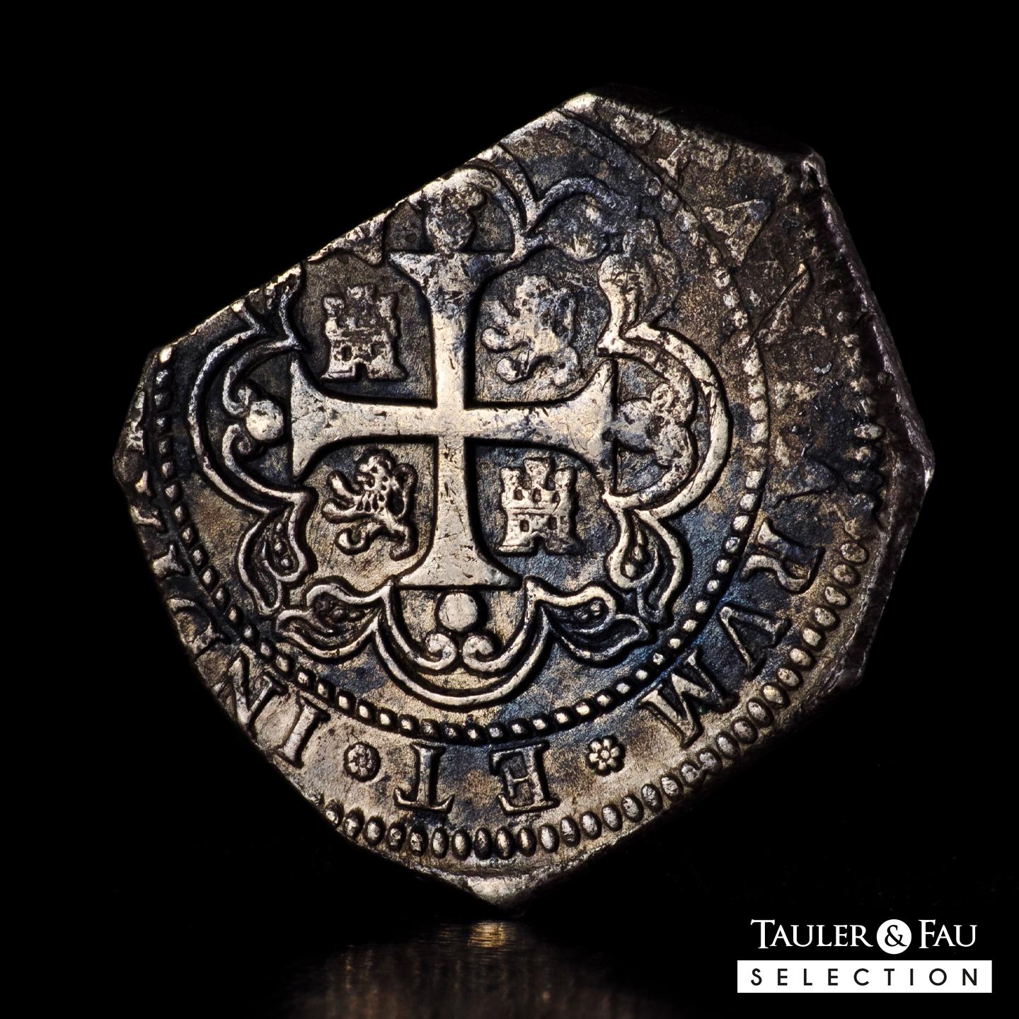 Most of the coins were Mexican pillar dollars, accompanied by a number of silver cobs —including the rare transitional klippes of 1733-1734— and a few Guatemalan cobs, found in mixed condition. Choice VF. Est...2000,00.