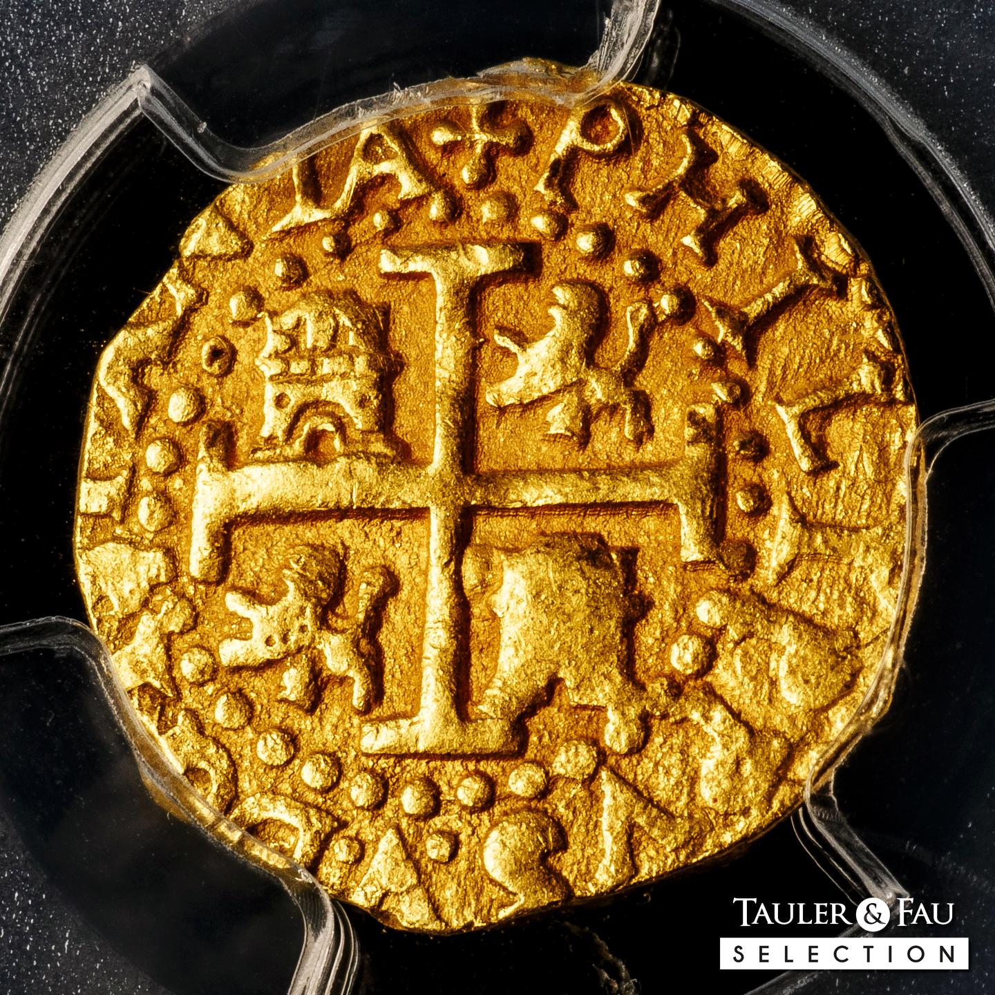 Today, the 1715 Fleet is recognized as the largest known source of New World gold cobs and one of the most iconic assemblages in colonial numismatics, its finds originating from multiple wrecksites whose precise identification remains an active subject of research. Est...6000,00.