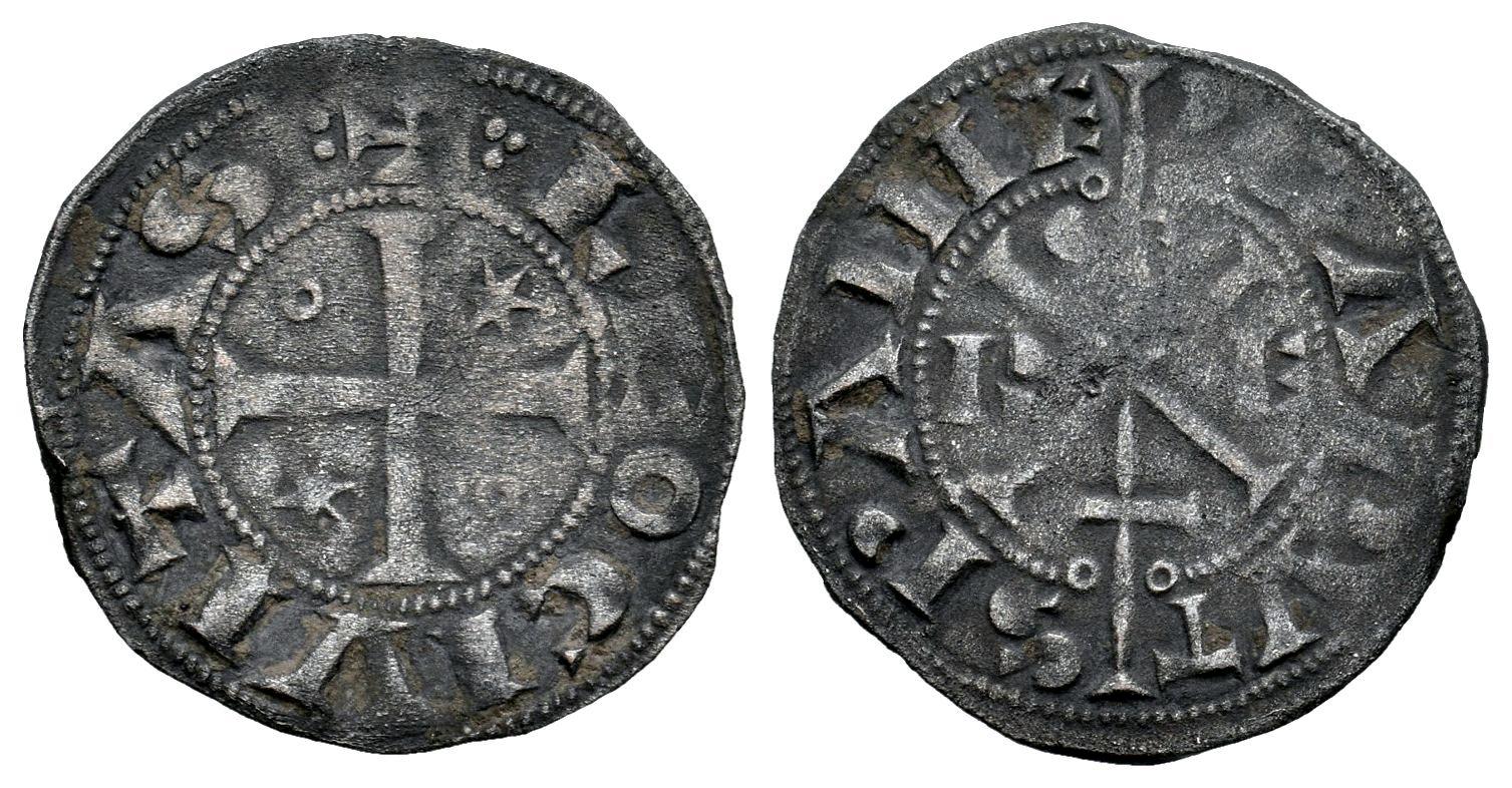 Kingdom of Castille and Leon. Alfonso VII (1126-1157). Dinero. Toledo. (Bautista-82). (Imperatrix-A7:26.1). Anv.: :✠:· LEO CIVITAS. Rev.: CAPVT SPANIE. Bi. 0,95 g. Roundel on the 1st and 4th quarter. Six-pointed star in the 2nd and 3rd Quarter. Extremely rare. Choice VF. Est...2000,00.