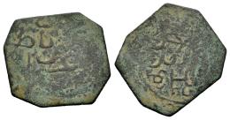 Nasrid of Granada. Ali ibn Sa'd. Fals. 881 AH. Gharnata (Granada). (Vives-2217). (Hohertz-82). (R. Lorente-82). Ae. 1,28 g. Unusual style. Choice F. Est...50,00.
