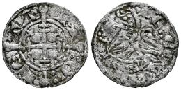 Kingdom of Castille and Leon. Fernando III (1217-1252). Dinero. Coruña. (Bautista-328 var.). (Imperatrix-S4:1.5 var., as Sancho IV (León)). Anv.: M / : O ·: / NE / TA. Anchored cross with divisions and 4 scallops directed towards the center of the cross. Rev.: Lion advancing to the left, LEGI / ONIS to right. Bi. 0,67 g. Unpublished variant, letter O of MONETA acoted by two and three roundels. Very rare.. Choice VF. Est...200,00.