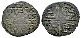 Kingdom of Castille and Leon. Alfonso X (1252-1284). "Dinero de seis lineas". Coruña. (Bautista-361.4). Bi. 0,70 g. Scallop shell in the 1st quadrant and two pellets in the 4th quadrant. Choice VF. Est...50,00.