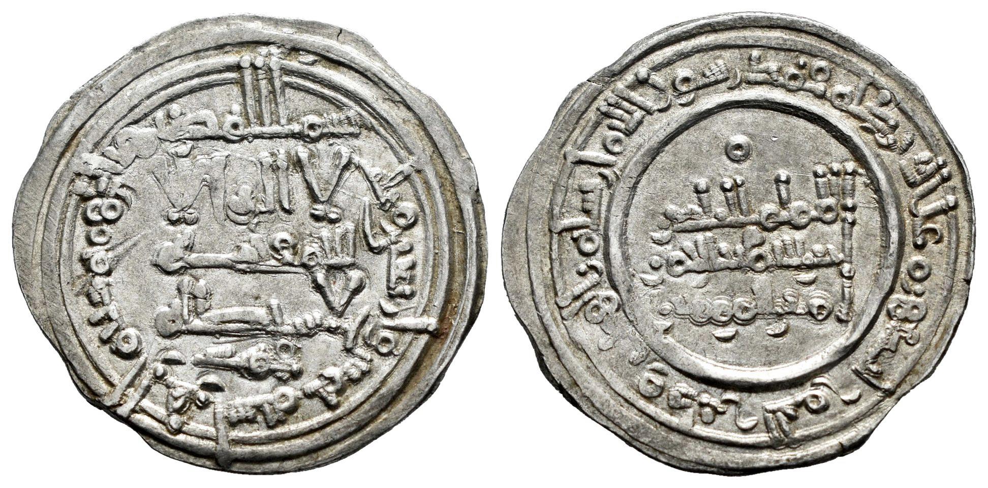 Caliphate of Cordoba. Abd Al-Rahman III. Dirham. 345 AH. Madinat al-Zahra. (Vives-428). Ag. 3,13 g. Citing Muhammad in IA. Choice VF/Almost XF. Est...60,00.